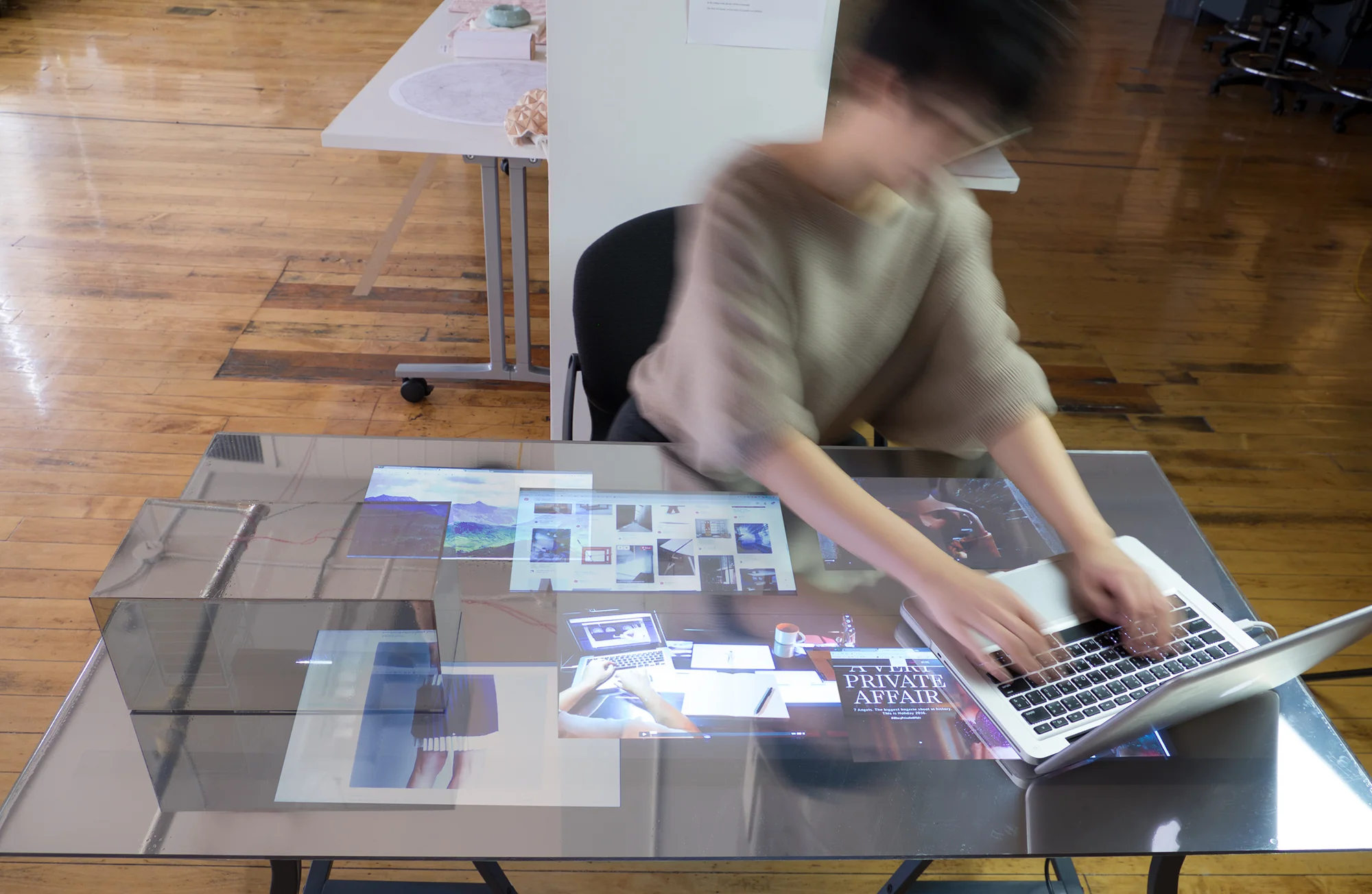 An experience that visualizes the process of personal data collection. As your data is collected, it is revealed onto your personal workspace.